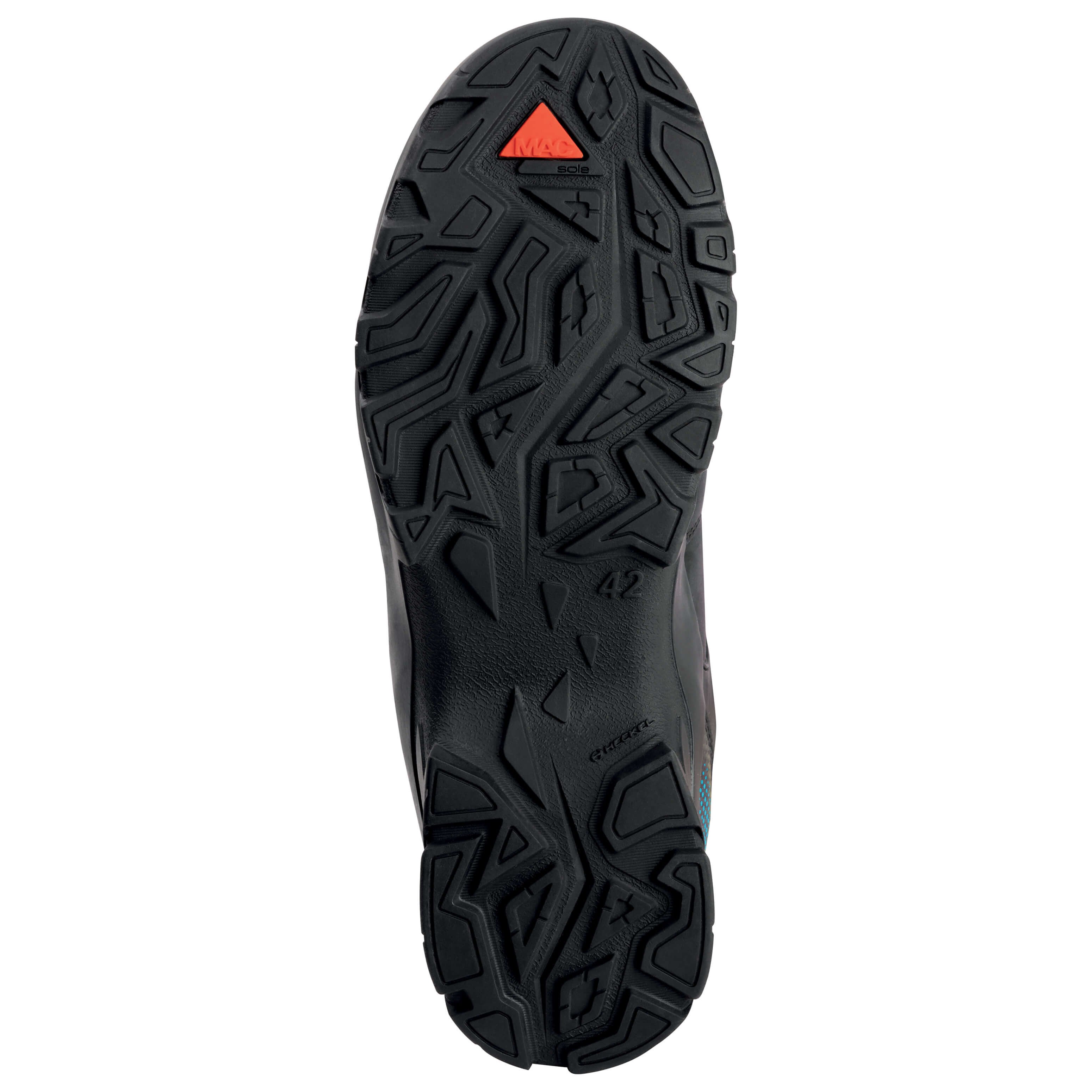 - semelle caoutchouc MACSOLE® ADVENTURE 3.0 résistante au glissement (SR), résistante aux huiles et aux hydrocarbures, résistante aux produits chimiques, résistante à la chaleur par contact jusqu’à 300 °C (HRO), antistatique | inserts EVA MACABSORB au talon et à l’avant-pied pour une souplesse accrue et un amorti optimal | talon décroché spécial sols difficiles | profil GRIPSTEP pour échelles et escaliers | crampons marqués aux arêtes vives pour offrir une accroche optimale | bout recouvert en caoutchouc directement intégré très résistant à l'abrasion pour une durée de vie prolongée de la chaussure (SC)